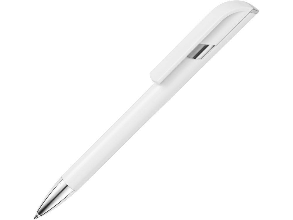 Пластиковая ручка с цветным корпусом и серебристым носиком привлечет внимание своим необычным дизайном: при нажатии на кнопку двигается только часть клипа, а вторая – остается на месте. Из шести расцветок можно выбрать ту, что наилучшим образом подойдет к вашим фирменным цветам.