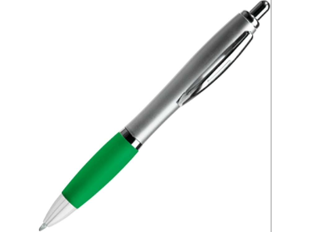 Шариковая ручка с серебристым корпусом из АБС-пластика и полупрозрачным мягким грипом