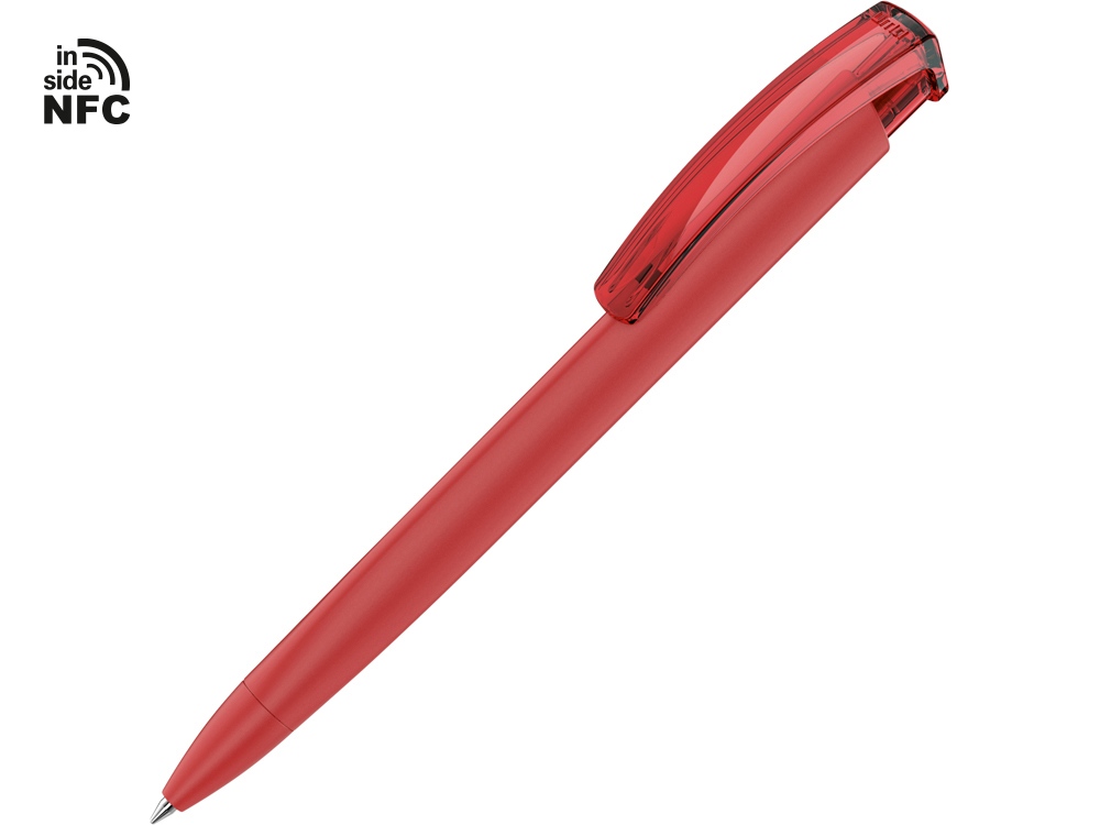 Пластиковая шариковая ручка Trinity K transparent Gum soft-touch с чипом передачи информации NFC обеспечивает быстрый доступ к рекламной информации. Для передачи данных посредством технологии NFC смартфон или планшет, которые поддерживают данную технологию, необходимо поднести к запрограммированной на ручке метке NFC (метка расположена под логотипом NFC). После этого на смартфоне или планшете откроется запрограммированная ссылка на сайт, ролик или начнется загрузка другой информации (заранее загруженной в сеть интернет). Таким образом метка работает как код, при чтении которого смартфон или планшет открывает определенную программу, активирует функцию или ссылку. Можно запрограммировать на метке NFC адрес сайта, каталог и другие рекламные материалы и раздавать вместо визиток. Метка NFC активирует одно действие на смартфоне или планшете.
