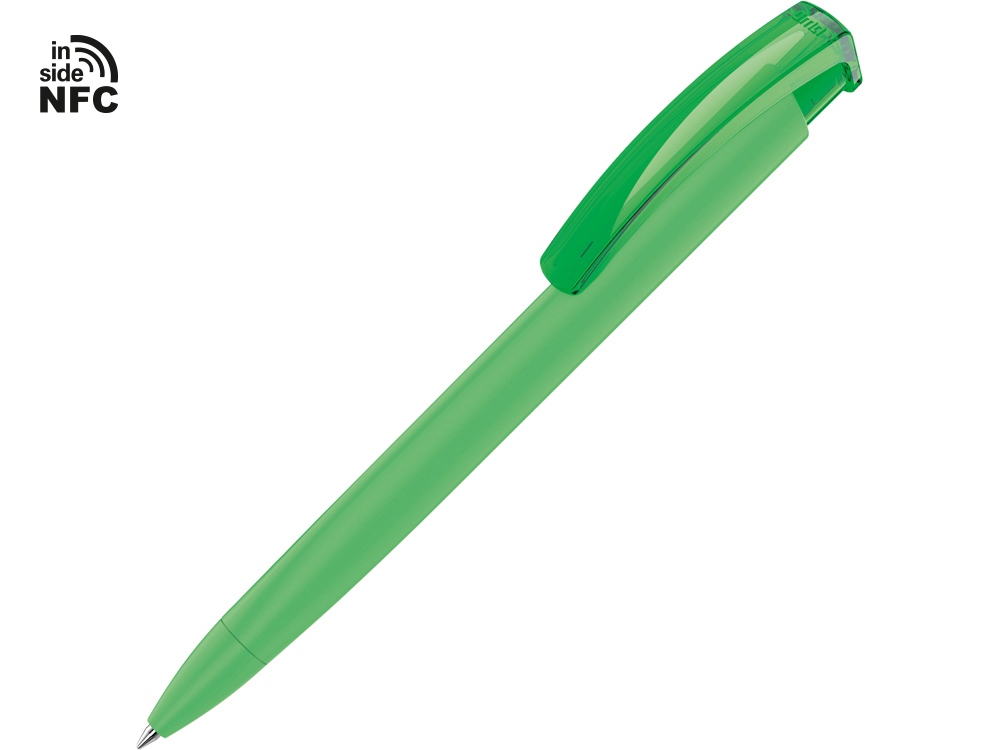 Пластиковая шариковая ручка Trinity K transparent Gum soft-touch с чипом передачи информации NFC обеспечивает быстрый доступ к рекламной информации. Для передачи данных посредством технологии NFC смартфон или планшет, которые поддерживают данную технологию, необходимо поднести к запрограммированной на ручке метке NFC (метка расположена под логотипом NFC). После этого на смартфоне или планшете откроется запрограммированная ссылка на сайт, ролик или начнется загрузка другой информации (заранее загруженной в сеть интернет). Таким образом метка работает как код, при чтении которого смартфон или планшет открывает определенную программу, активирует функцию или ссылку. Можно запрограммировать на метке NFC адрес сайта, каталог и другие рекламные материалы и раздавать вместо визиток. Метка NFC активирует одно действие на смартфоне или планшете.