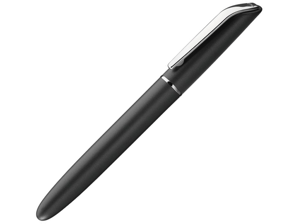 Ручка роллер с корпусом в металлическом цвете. Декоративное кольцо и металлический клип с глянцевой хромированной отделкой.