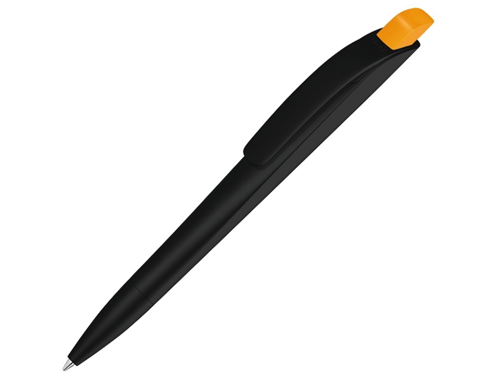 Автоматическая шариковая ручка с нажимным механизмом, матовым тонированным белым корпусом и цветным наконечником, широким изогнутым клипом.