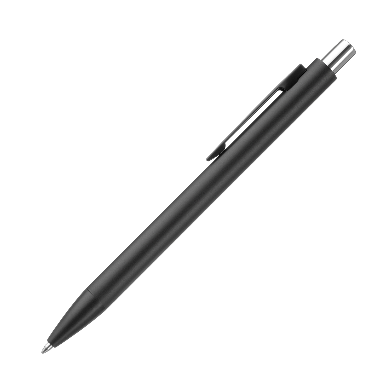 Классическая ручка в строгом черном корпусе и с черной фурнитурой. При гравировке на корпусе ручки она вскрывается в цвет нажимной кнопки.
