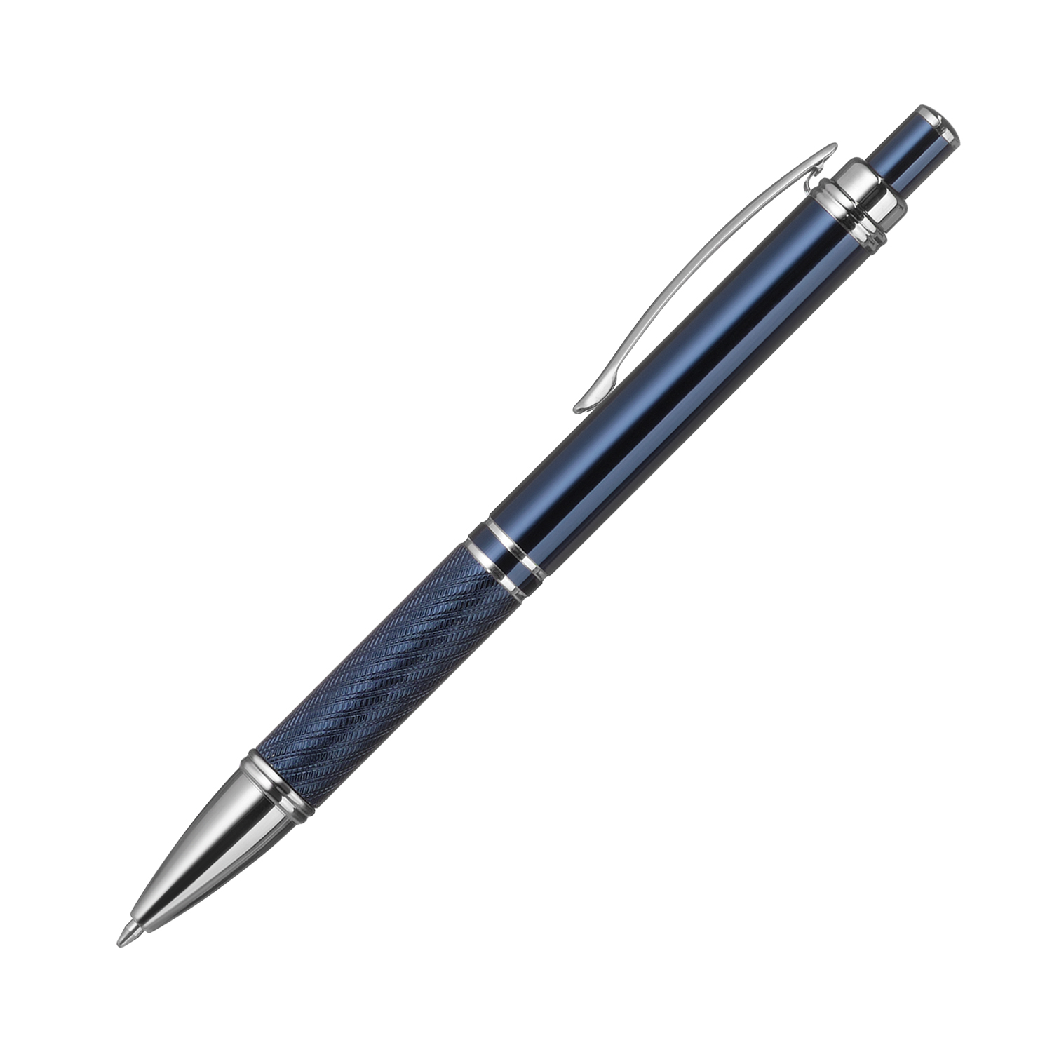 Элегантная шариковая ручка с ярким глянцевым корпусом и хромированными деталями.