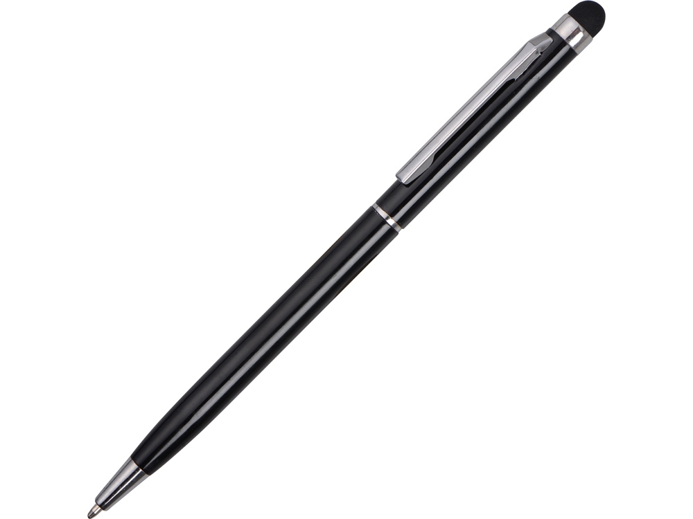 Тонкая металлическая шариковая ручка с поворотным механизмом и стилусом. Функциональный и стильный аксессуар станет отличным подарком.