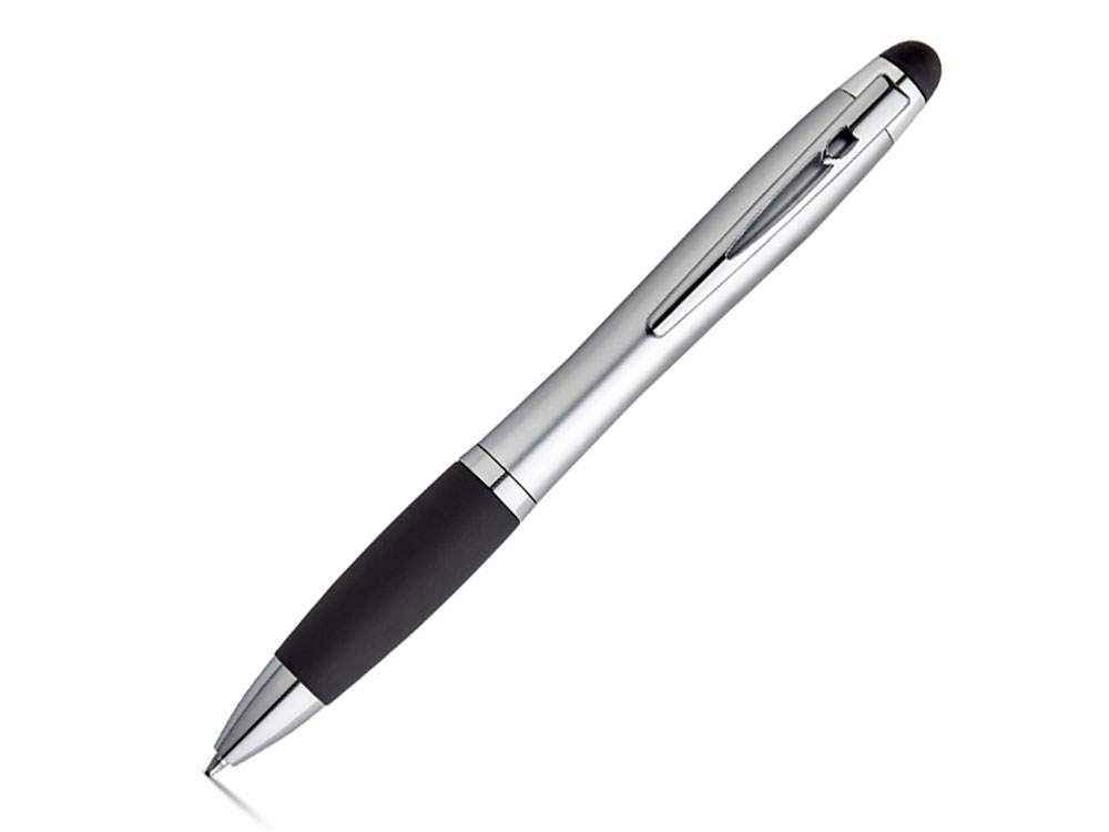 HELIOS. Шариковая ручка с внутренней подсветкой, Черный. Шариковая ручка со стилусом, подсветкой логотипа, металлическим клипом и противоскользящим покрытием. 3 батарейки AG3 входят в комплект. Вид нанесения, рекомендуемый поставщиком: тампопечать, УФ-печать, гравировка
