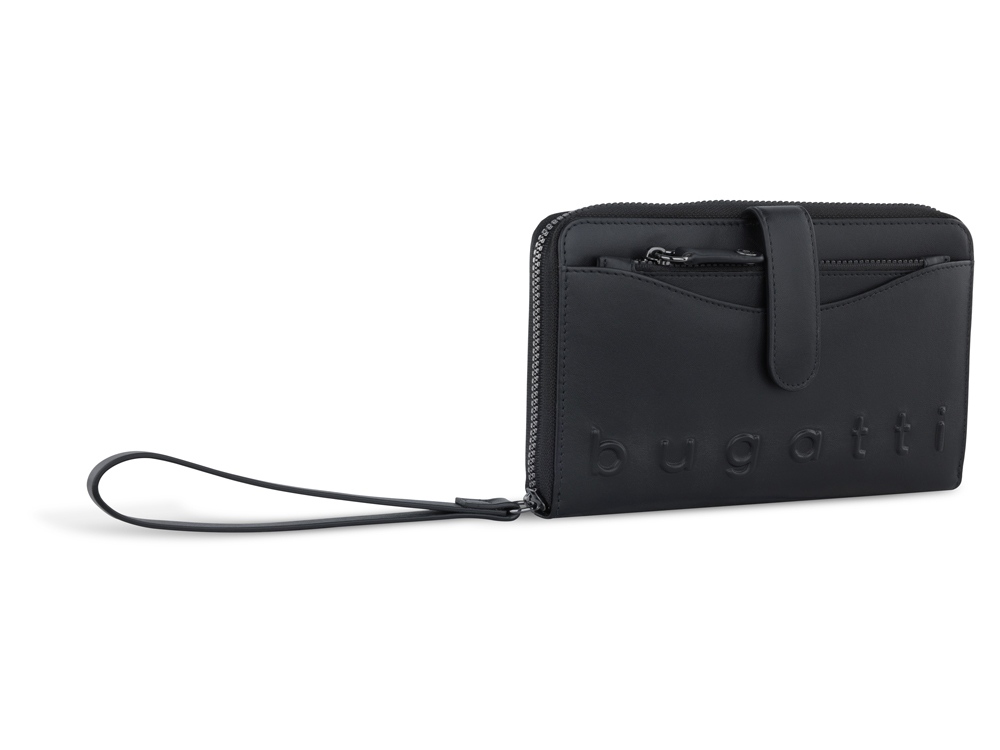 Кошелёк женский BUGATTI Daphne с ключницей, чёрный цвет, воловья кожа/полиэстер, 19х3х11 см