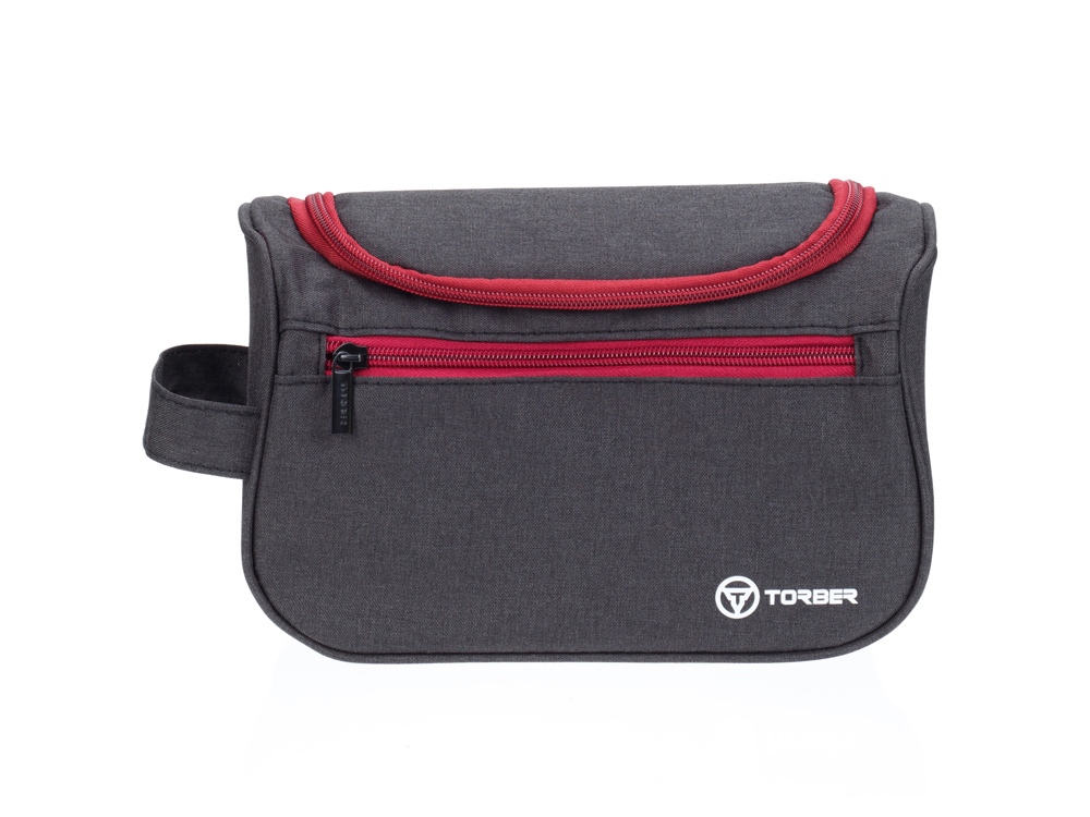 Несессер TORBER, дорожный, чёрный/бордовый, полиэстер 300D, 24 х 16 х 9 см