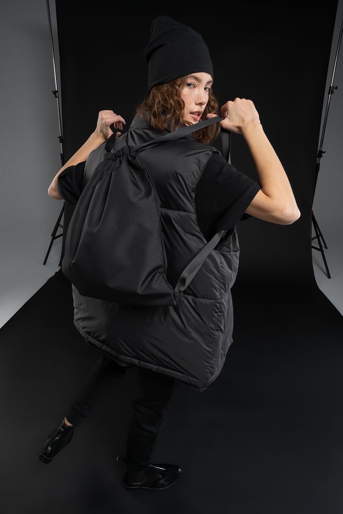 Прочный и вместительный трансформер — шопер и рюкзак на шнурках — разработан в рамках единой коллекции одежды и аксессуаров, поэтому легко комбинируется с ее элементами. Специально спроектированные лекала и технологии пошива открывают простор для любых вариантов кастомизации и нанесения изображений. На видимой части изделий нет лейблов с айдентикой бренда, а название бренда с уходника легко удалить.
