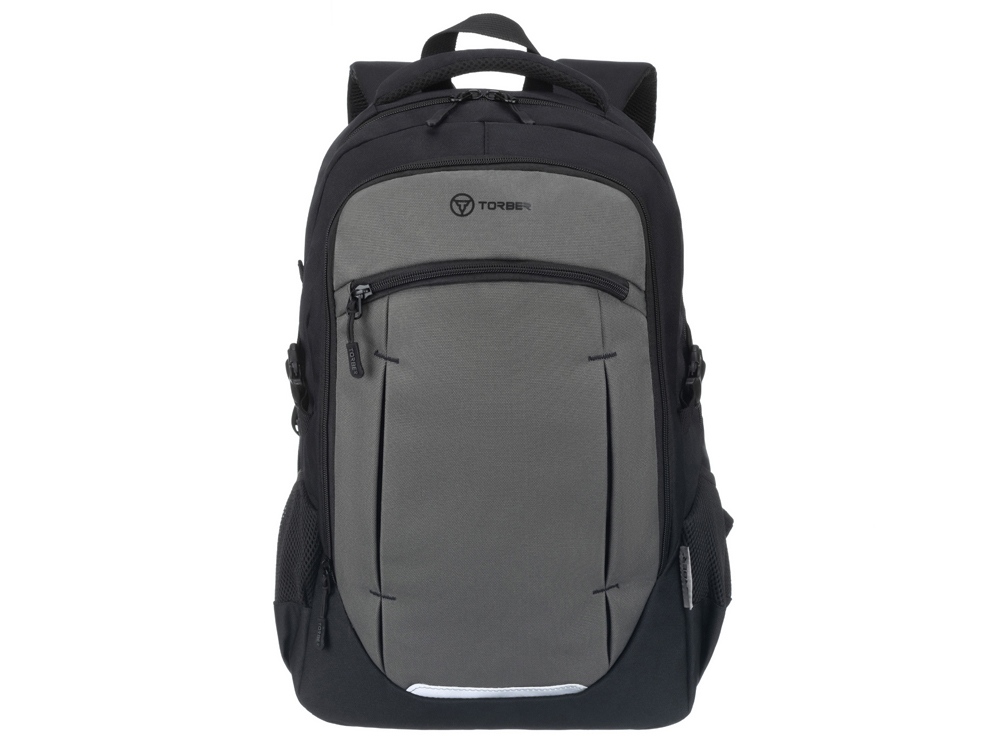 Рюкзак TORBER КЛАСС, чёрно-серый, 46 x 32 x 18 см + Мешок для сменной обуви в подарок!