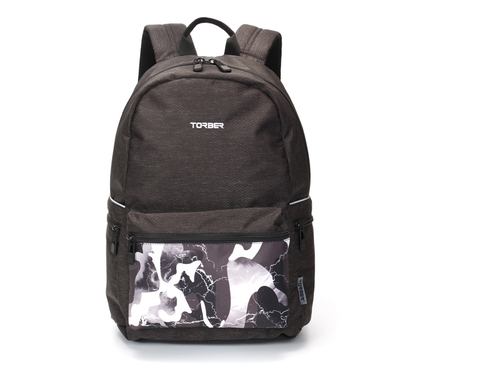 Рюкзак TORBER GRAFFI, серый с карманом черно-белого цвета, полиэстер, 44 х 31 х 18 см