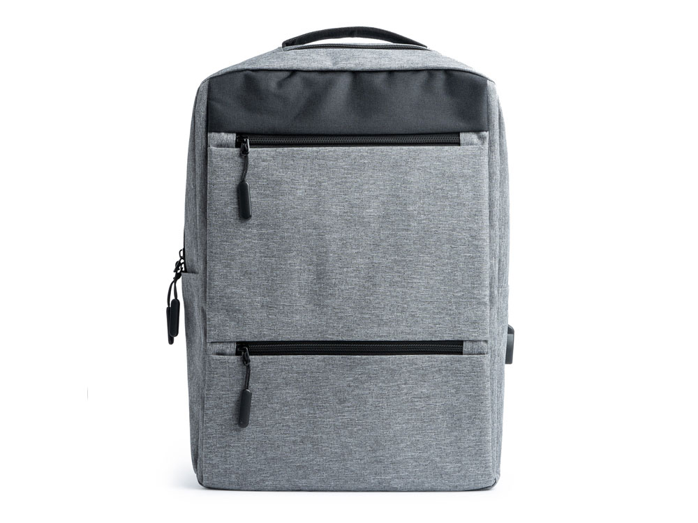 Рюкзак из полиэстера 300D. Отделка OXFORD с инновационным дизайном. Мягкое основное отделение идеально подходит для ноутбука и два передних кармана с элегантными ручками. Включает USB-разъем для подключения внешнего аккумулятора (не входит в комплект). Ремни и мягкая спинка.
