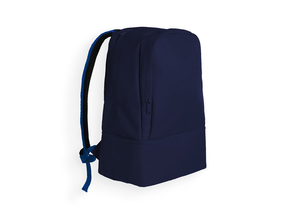 Двухцветный спортивный рюкзак с эргономичным дизайном. Двойные усиленные плечевые ремни и одна ручка. Стеганая спинка. Отделение для обуви со стеганым покрытием. Одно основное отделение с двойным бегунком и наружный передний карман меньшего размера. Водонепроницаемый.