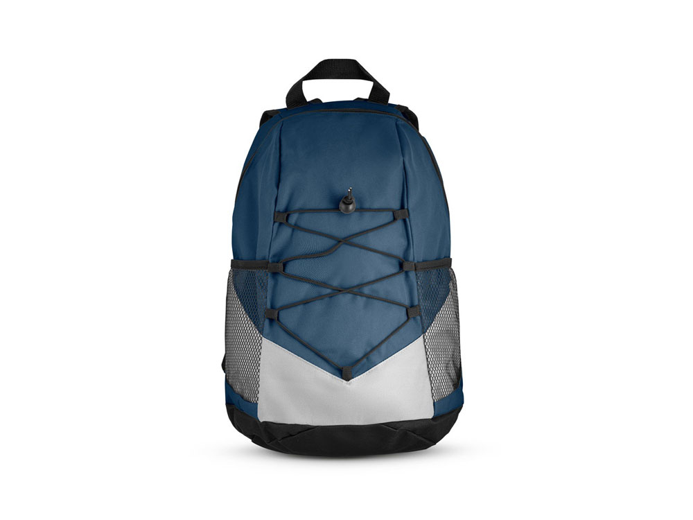 Рюкзак из 600D с боковыми карманами из сетки и одним внутренним. Задняя часть и плечевые ручки с набивкой. 250 x 420 x 180 мм