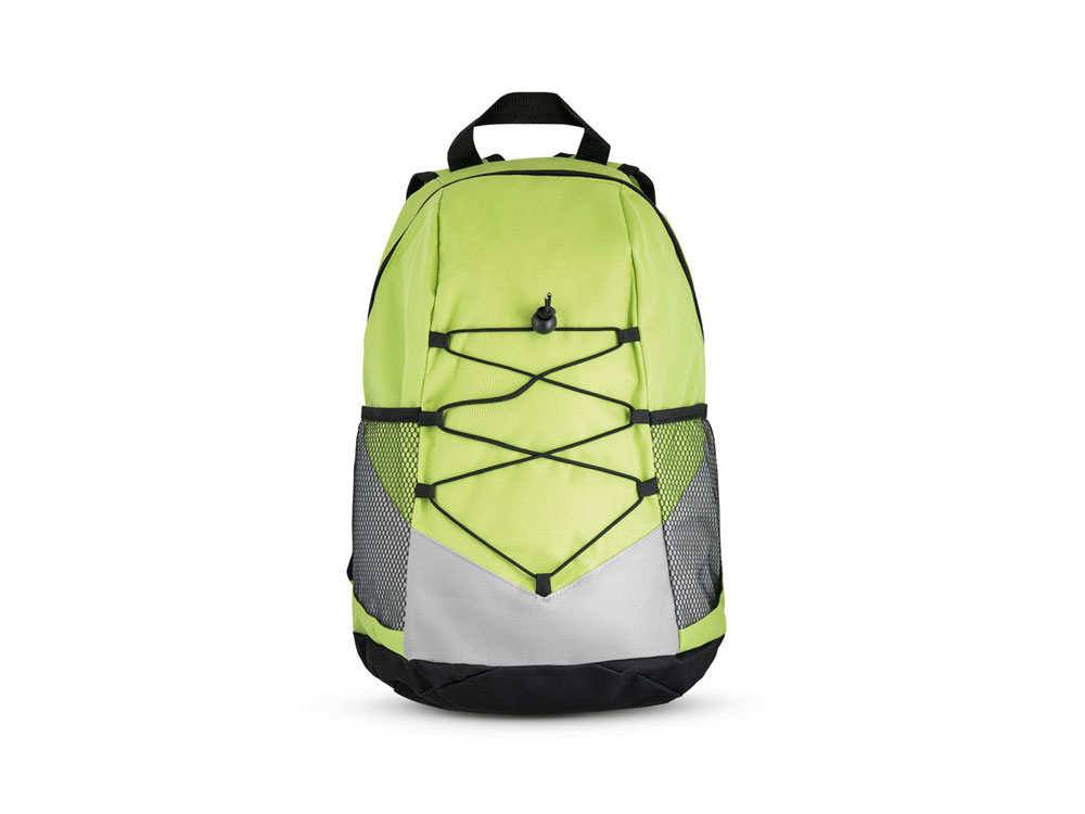 Рюкзак из 600D с боковыми карманами из сетки и одним внутренним. Задняя часть и плечевые ручки с набивкой. 250 x 420 x 180 мм