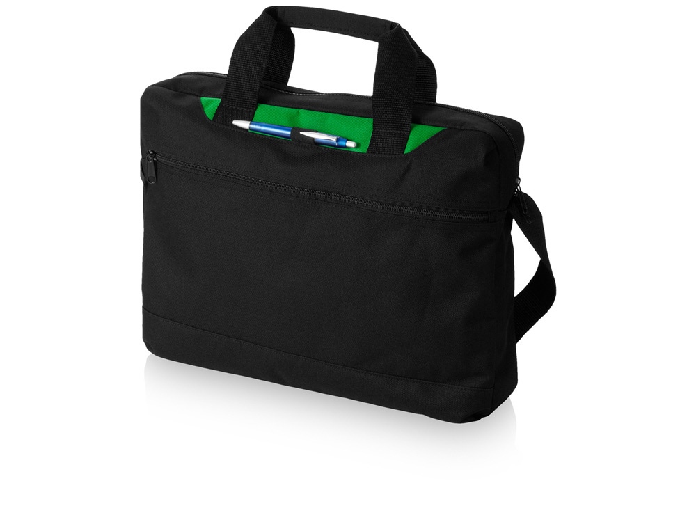 Удобная сумка для деловых принадлежностей с цветной вставкой и возможностями индивидуализации. Большое основное отделение на молнии, формат А4. Передний карман на молнии, сверху – оригинальная петелька для ручки. Регулируемый плечевой ремень для удобства переноски. Термотрансфер (1 цвет (цветные изделия)) на данный товар осуществляется бесплатно. Оплачивается только настройка оборудования в размере 8700 рублей на весь тираж.