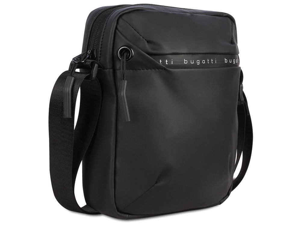 Сумка наплечная BUGATTI Blanc, чёрная, тарпаулин/полиэстер, 17х4,5х21 см