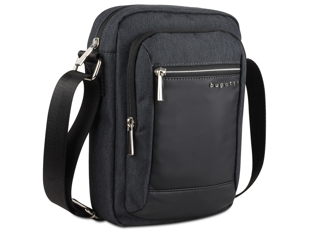 Сумка наплечная мужская BUGATTI Sera, антрацитовая, полиэстер, 21х6х26,5 см