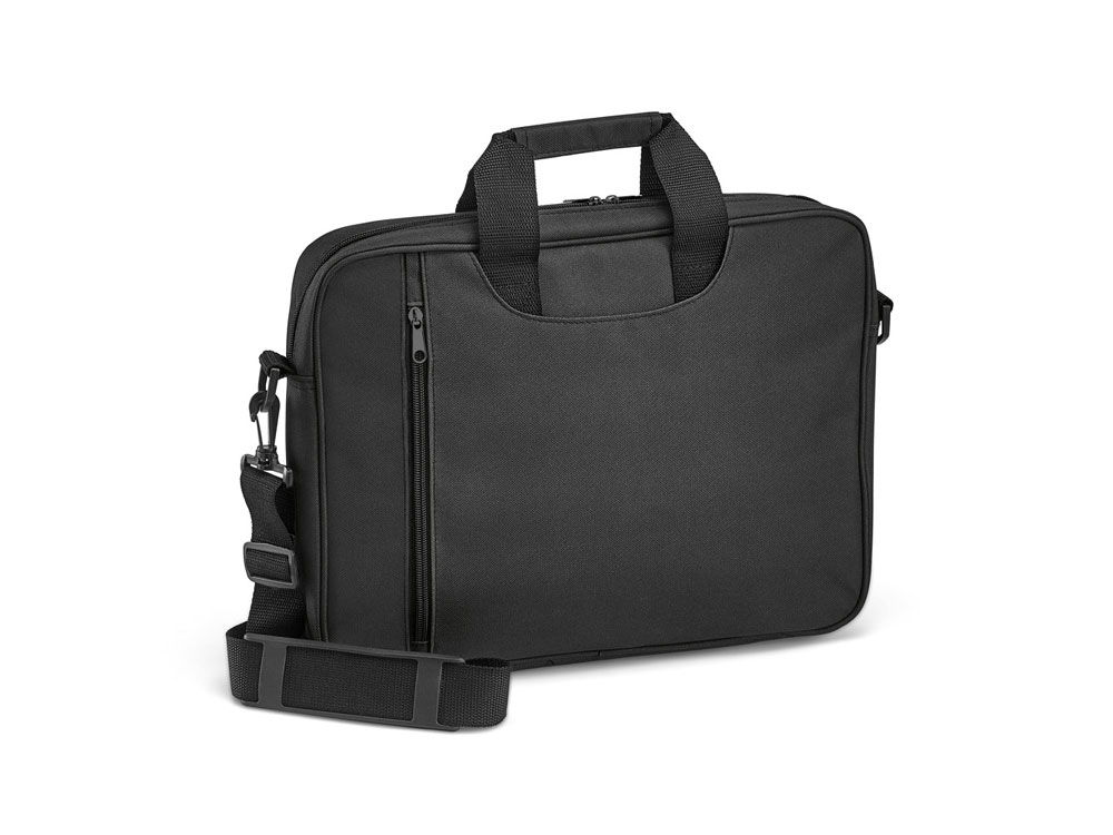 GARBI. Сумка для ноутбука 14'', Черный. Сумка для документов из полиэстера 600D с регулируемым плечевым ремнем, 1 основным отделением и 2 дополнительными карманами. Вид нанесения, рекомендуемый поставщиком: вышивка, трансфер