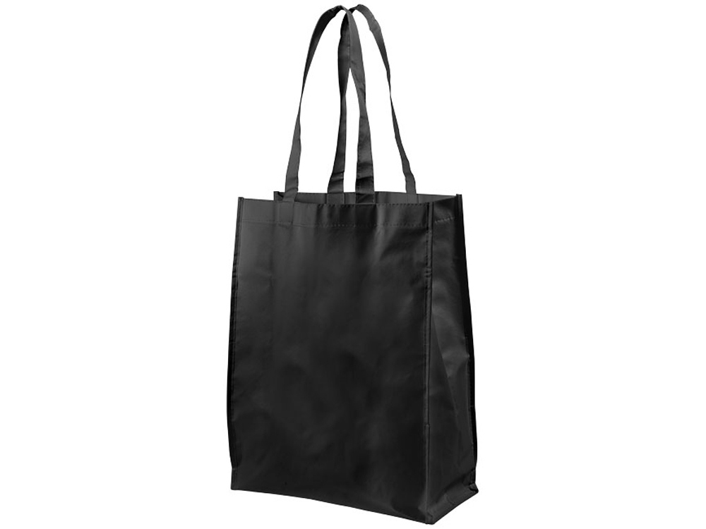 Ламинированная сумка для покупок среднего размера. Открытое основное отделение. Ламинированный материал водонепроницаемый и легко моется. Высота ручек 25 см. Ламинированный нетканый полипропилен 80г. Трафаретная печать (1 цвет (цветные изделия)) на данный товар осуществляется бесплатно. Оплачивается только настройка оборудования в размере 8700 рублей на весь тираж.
