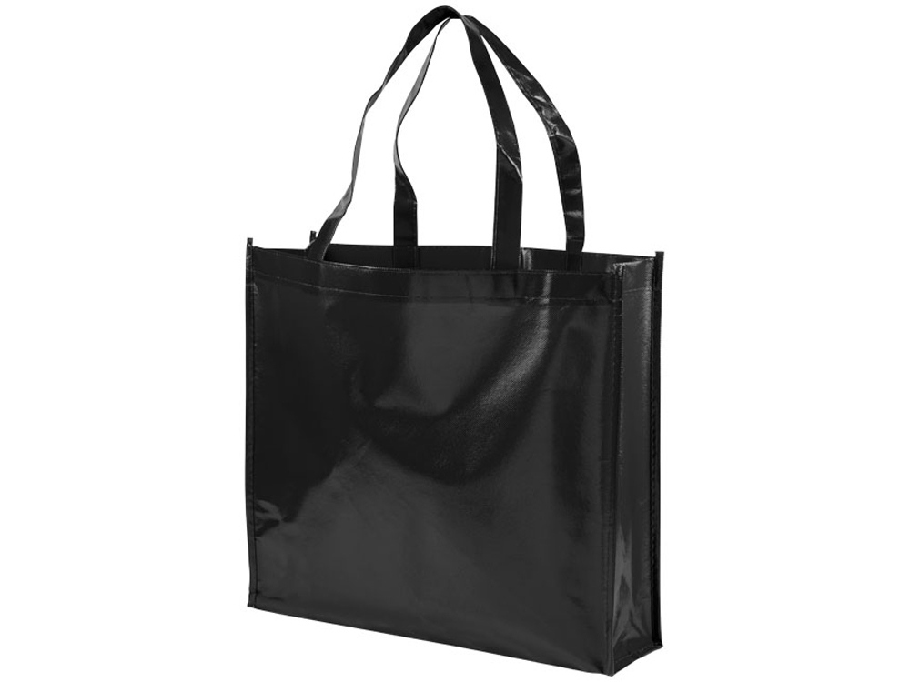 Блестящая ламинированная нетканая сумка-тоут для покупок. Удобная ламинированная нетканая сумка-тоут для покупок с ниспадающей ручкой длиной 23 см. Ламинированный нетканый полипропилен.