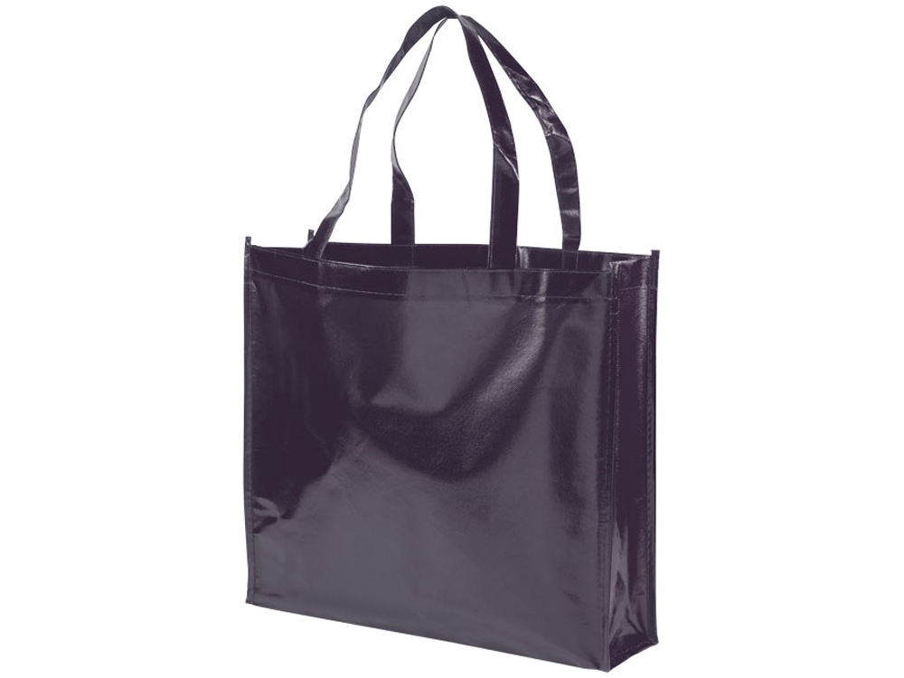 Блестящая ламинированная нетканая сумка-тоут для покупок. Удобная ламинированная нетканая сумка-тоут для покупок с ниспадающей ручкой длиной 23 см. Ламинированный нетканый полипропилен.