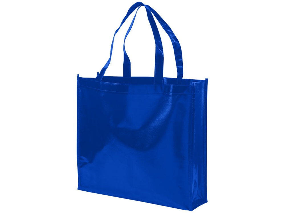 Блестящая ламинированная нетканая сумка-тоут для покупок. Удобная ламинированная нетканая сумка-тоут для покупок с ниспадающей ручкой длиной 23 см. Ламинированный нетканый полипропилен.