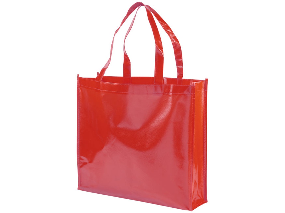 Блестящая ламинированная нетканая сумка-тоут для покупок. Удобная ламинированная нетканая сумка-тоут для покупок с ниспадающей ручкой длиной 23 см. Ламинированный нетканый полипропилен.