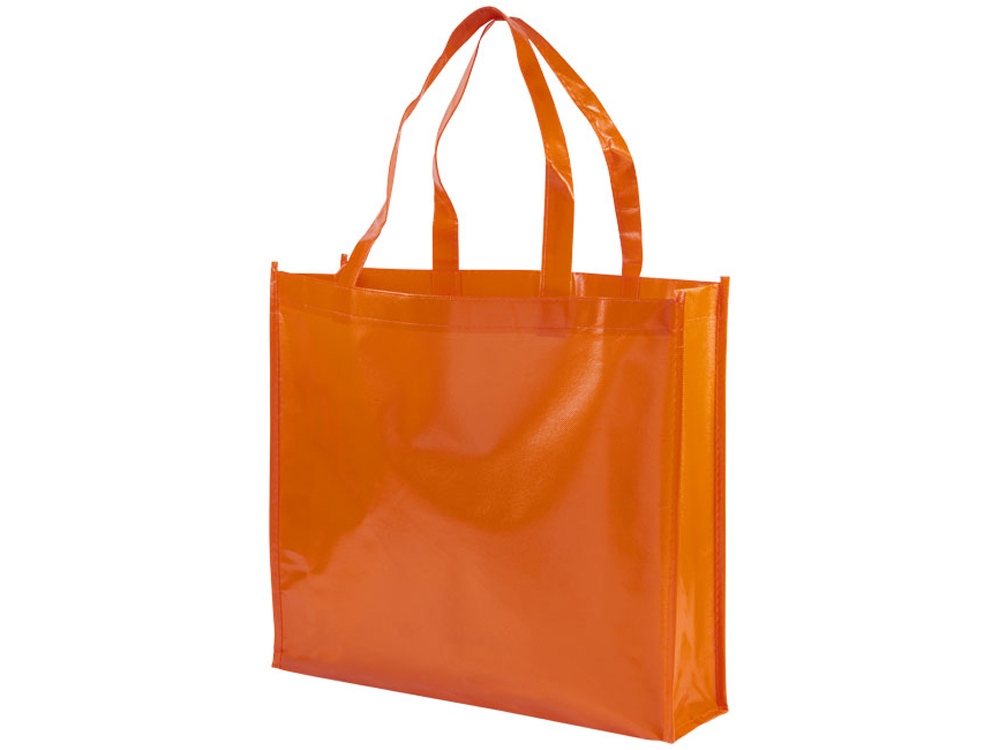 Блестящая ламинированная нетканая сумка-тоут для покупок. Удобная ламинированная нетканая сумка-тоут для покупок с ниспадающей ручкой длиной 23 см. Ламинированный нетканый полипропилен.
