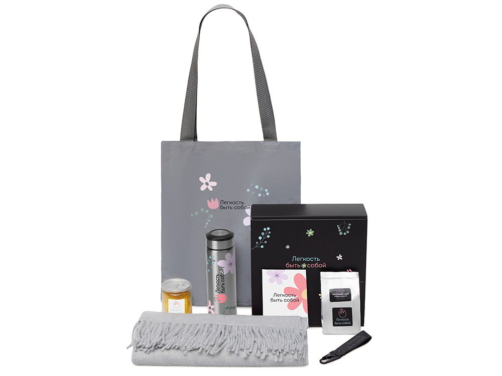 Подарочный набор Re:f. Walk с палантином, шоппером и термосом, серый