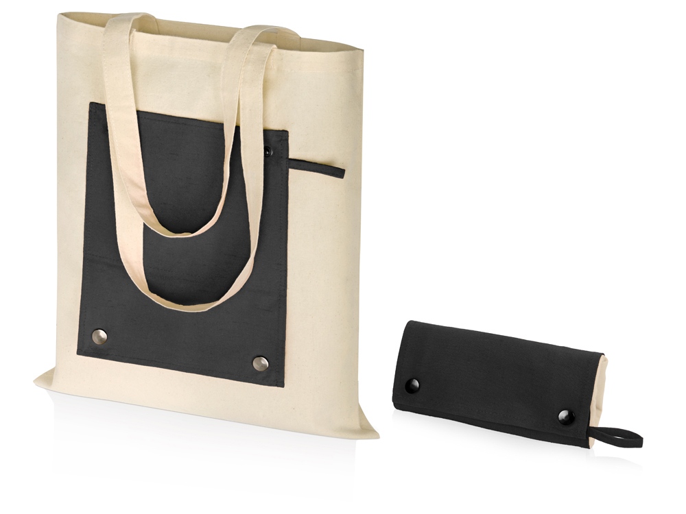 Складная хлопковая сумка для шопинга Gross с карманом, черный