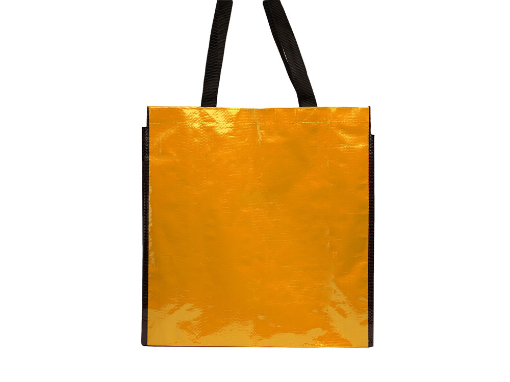 Сумка многоразового использования с глянцевой ламинированной отделкой. Прочный материал с ручками из усиленного нейлона и соответствующей черной окантовкой.