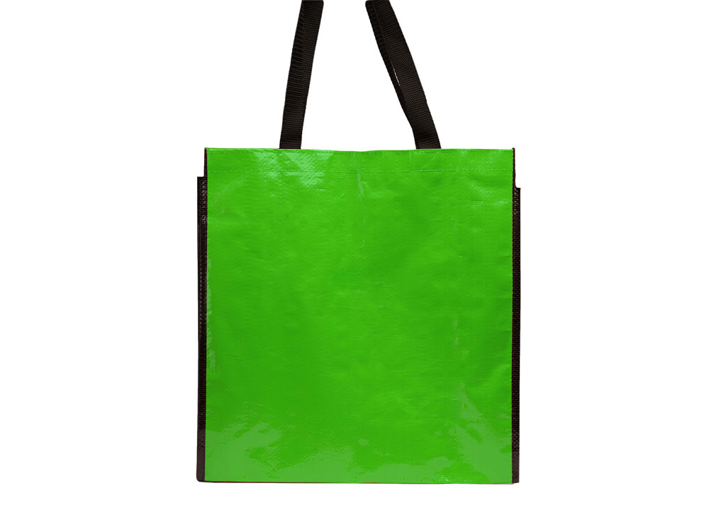 Сумка многоразового использования с глянцевой ламинированной отделкой. Прочный материал с ручками из усиленного нейлона и соответствующей черной окантовкой.