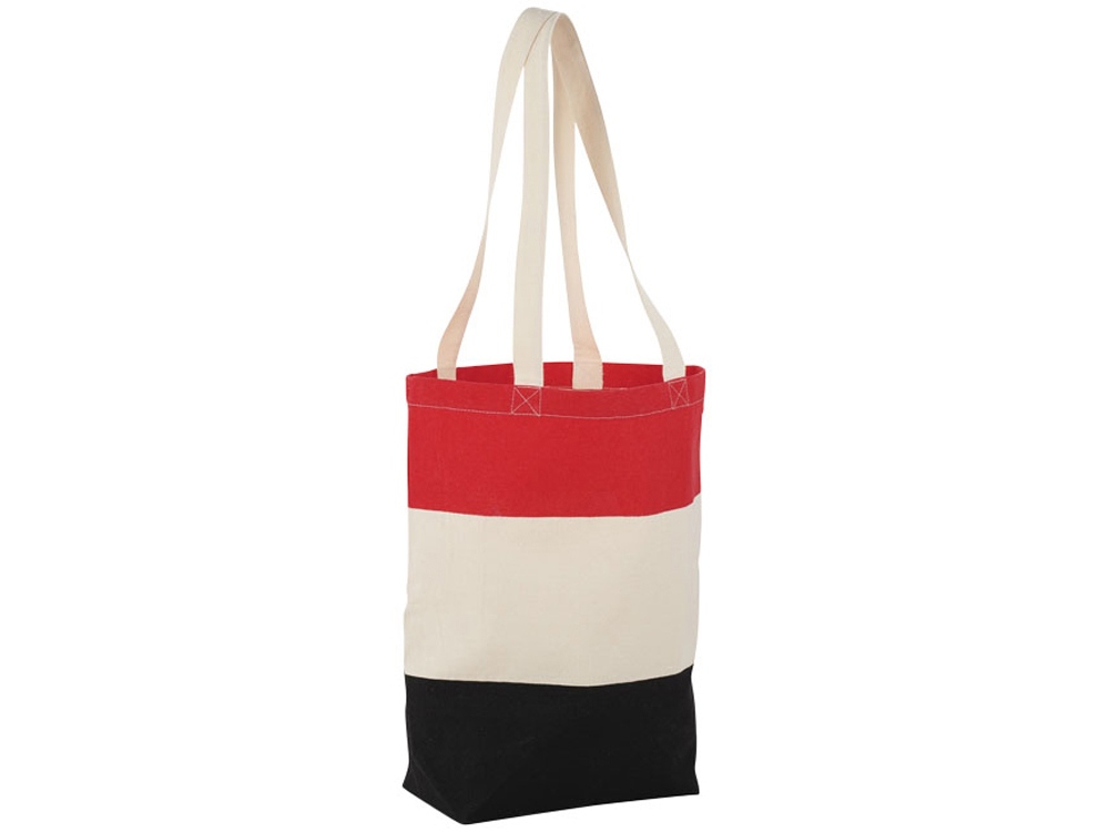 Хлопковая сумка Colour Block. Хлопковая сумка (227 г/м²) на плечо с открытым основным отделением. Цветные вставки делают сумку привлекательной для покупок, на пляж и для повседневного использования. Двойные ручки 31 см. Хлопок 227 г/м². Трафаретная печать (1 цвет (цветные изделия)) на данный товар осуществляется бесплатно. Оплачивается только настройка оборудования в размере 8200 рублей на весь тираж.
