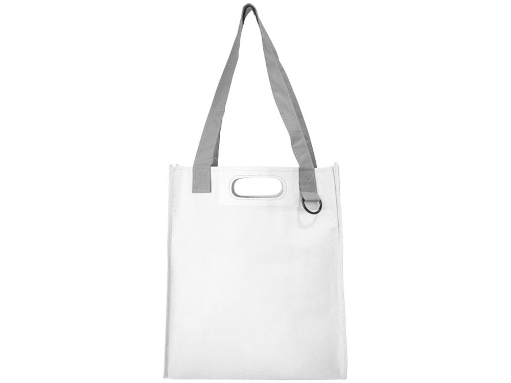 Нетканая сумка-тоут Expo для покупок. Прочная нетканая сумка из полипропилена, идеально подходящая для использования на выставках, конференциях и мероприятиях. Идеальная сумка для хранения документов, с пластиковой петлей для крепления пропусков, прочными ручками и боковым кармашком для ручек. Нетканый полипропилен. Трафаретная печать (1 цвет (цветные изделия)) на данный товар осуществляется бесплатно. Оплачивается только настройка оборудования в размере 8700 рублей на весь тираж.