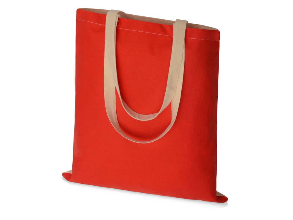 Сумка для шопинга Twin двухцветная из хлопка, 180 г/м2, красный/натуральный