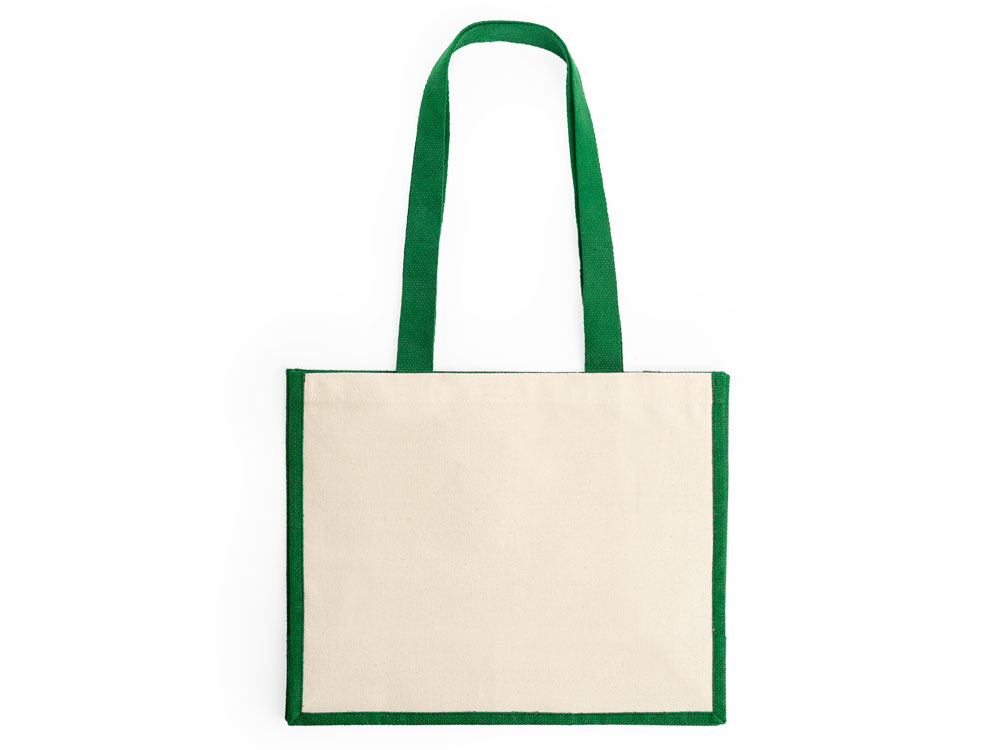 Сумка из ламинированного джута с длинными ручками и хлопковыми боковыми сторонами. Идеально подходит для нанесения.