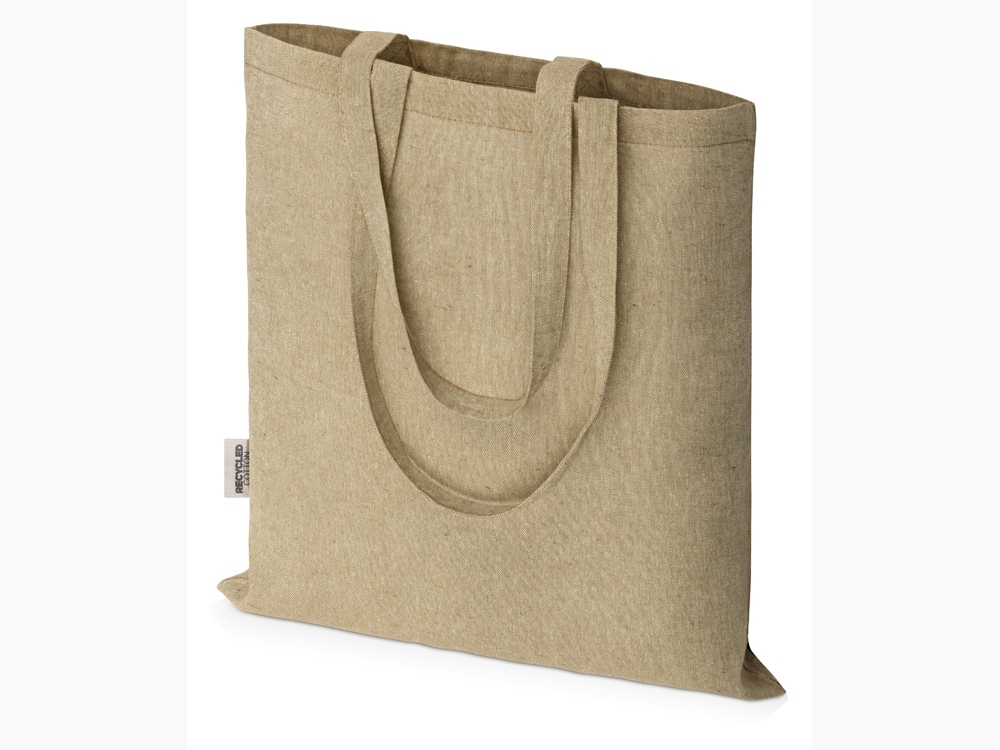 Сумка-тоут из переработанного хлопка 150 г/м² с ниспадающей ручкой длиной 30 см. Эта сумка легко складывается для ее удобного хранения. Идеальная сумка для различных целей, включая покупки в магазинах, однодневные поездки или рукоделие. Из-за особенностей переработанного хлопка цвета могут немного варьироваться. Это придает сумке оригинальный вид. Переработанный хлопок.