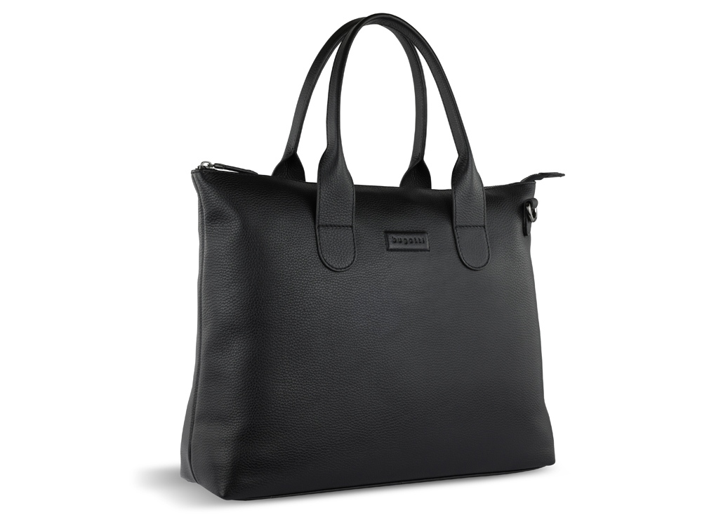Сумка-шоппер BUGATTI ЭЛЬЗА | ELSA, чёрная, воловья кожа/полиэстер, 46х11х31,5 см