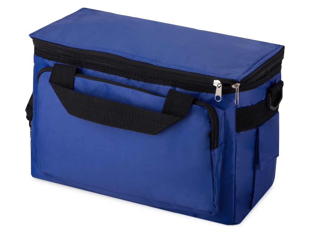Вместительная сумка-холодильник (объем – 15 л.) Камайоре прекрасно подойдет не только для индивидуальных пикников, но даже и для доставки горячих продуктов (пиццы, например). С боков 2 кармана – один сетчатый с регулируемой затяжкой для бутылки. Другой для приборов, салфеток или других мелочей закрывается на липучку. Наружный слой сделан из полиэстера, на него может быть нанесена персонализация: имя владельца или логотип компании.