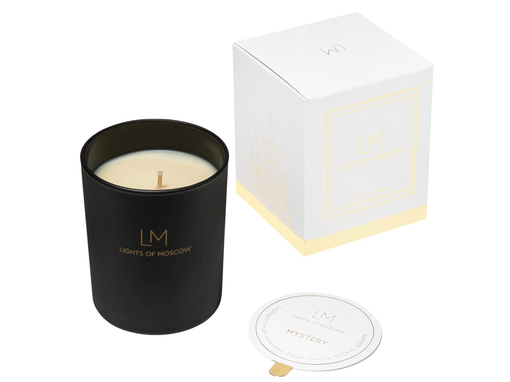Коллекция аромасвечей Exclusive является уникальной не только из-за ароматов коллекции, но и благодаря тщательно разработанному дизайну упаковки, которая является напоминанием о том, что бренд Lights of Moscow - это ручное российское производство в самом центре Москвы. Белая коробка оформлена ярким золотым фольгированием, на левой стороне которой изображен Храм Василия Блаженного - одна из главных достопримечательностей на Красной площади в Москве.