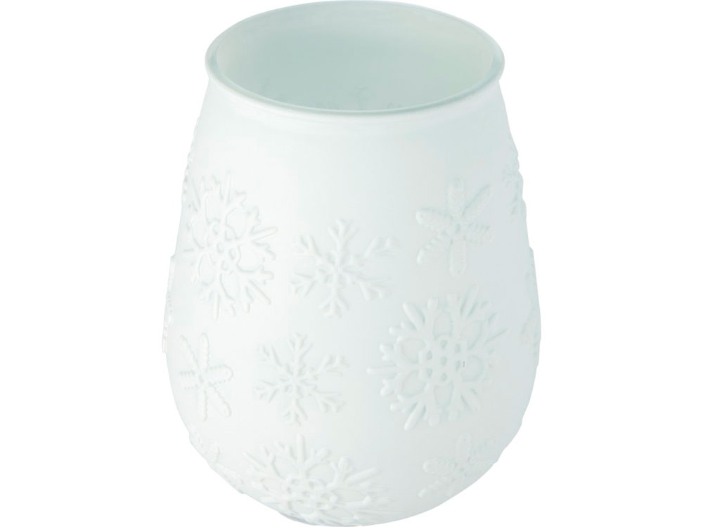Подставка для чайной свечи из переработанного стекла с узором в виде падающих снежинок. Эта подставка создана из 1 переработанной стеклянной бутылки. Переработанное стекло не отличается ничем по качеству от обычного, но при этом является более экологичным, ведь на изготовление этого материала тратится меньше энергии, сырья и примесей. Чайная свеча не входит в комплект.