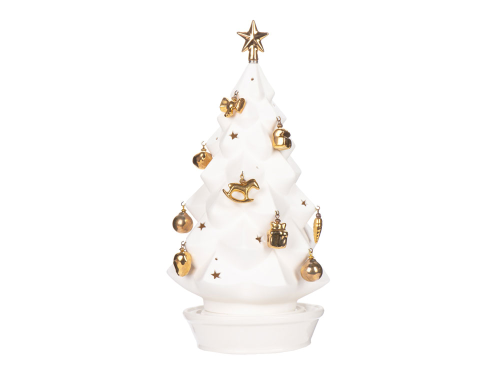 Подсвечник Новогодняя Ель (бисквит) с росписью игрушек золотом