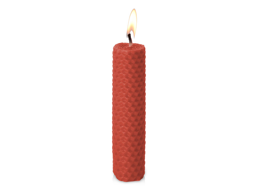 Свеча из вощины 3 х 12,5 см с деревянным ярлыком, красный