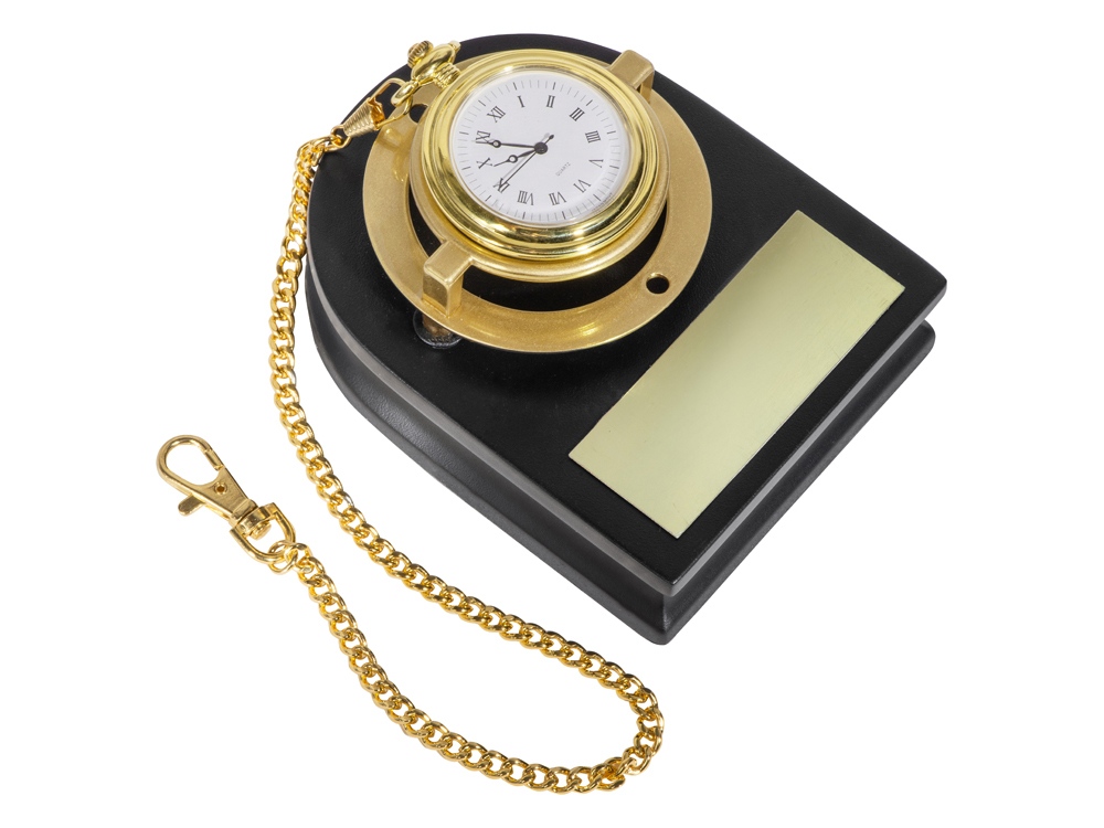 Часы Магистр с цепочкой на деревянной подставке, золотистый/черный