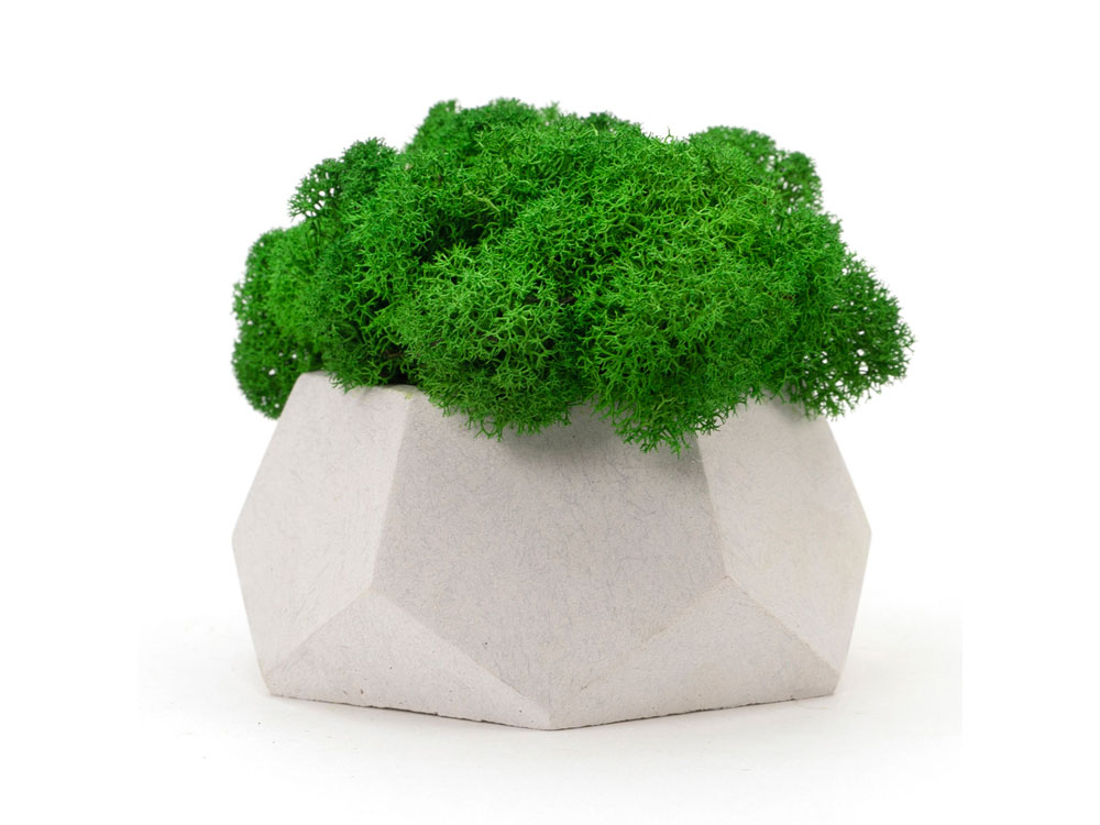 Кашпо бетонное со мхом (альфа-циркон мох зеленый), QRONA