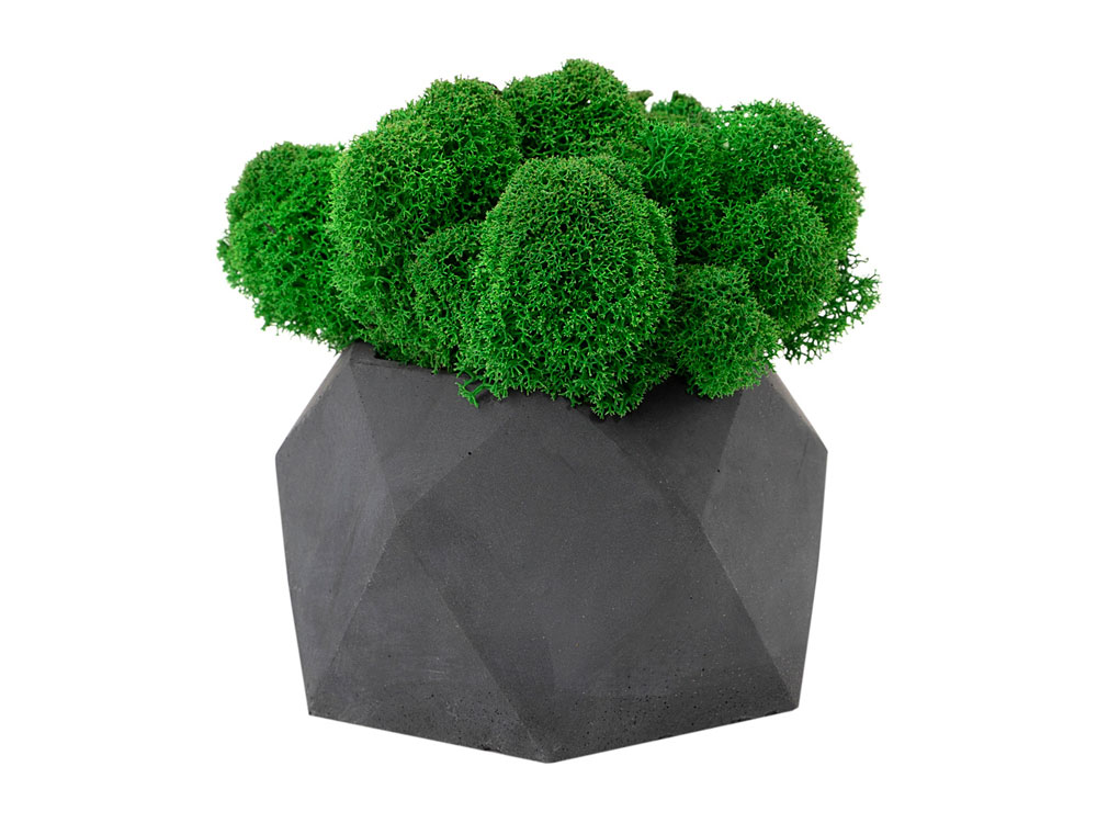 Кашпо бетонное со мхом (бета-антрацит мох зеленый), QRONA