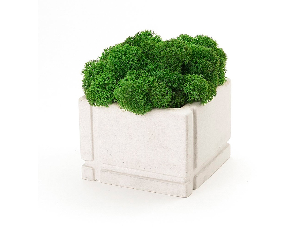 Кашпо бетонное со мхом (квадрат-циркон мох зеленый), QRONA