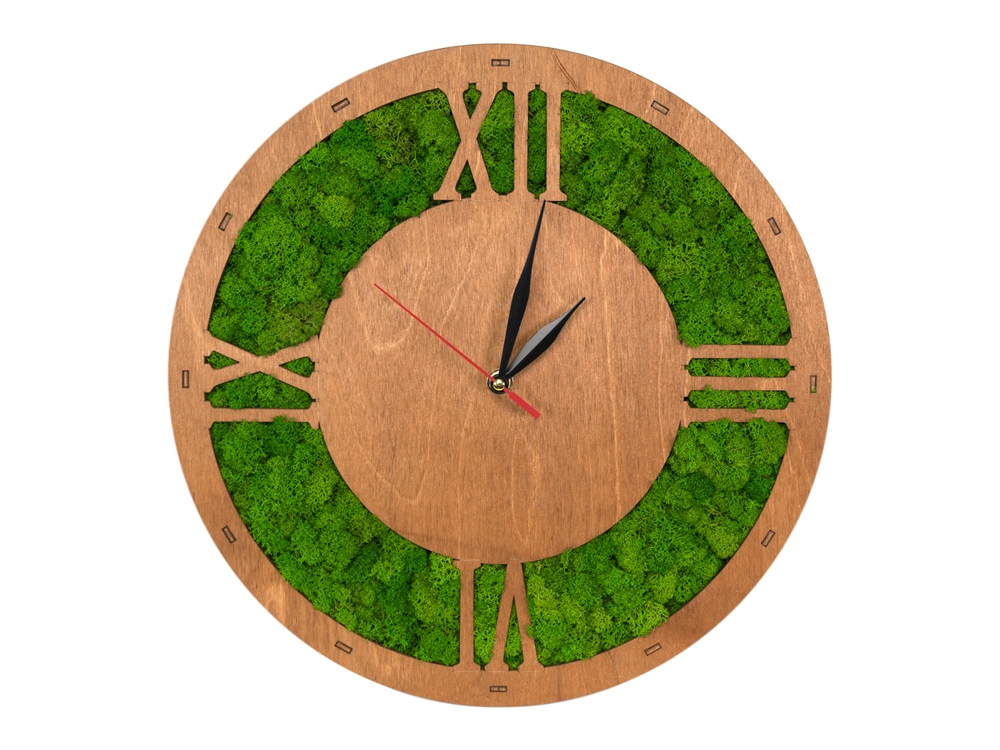 Часы Римские выполнены из дерева. Они изготовлены в трендовом стиле с использованием стабилизированного мха. Он великолепно смотрится и не требует ухода. Такие часы замечательно дополнят ваш интерьер.