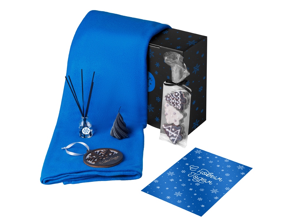 Подарочный набор с пледом, свечой и диффузором, синий